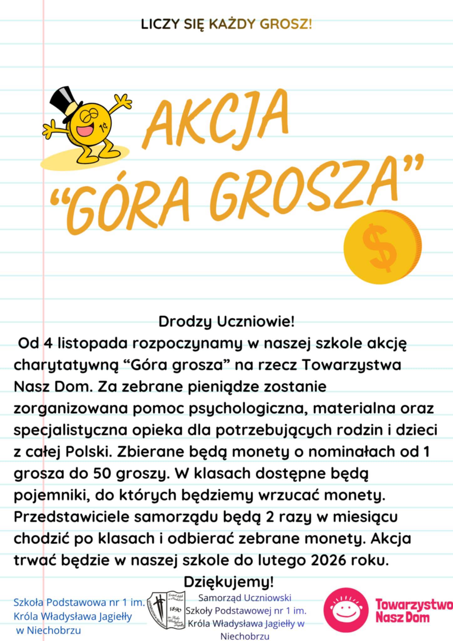 Przypominamy, że organizatorem konkursu jest Rada Rodziców przy Szkole Podstawowej nr 1 w Niechobrzu.