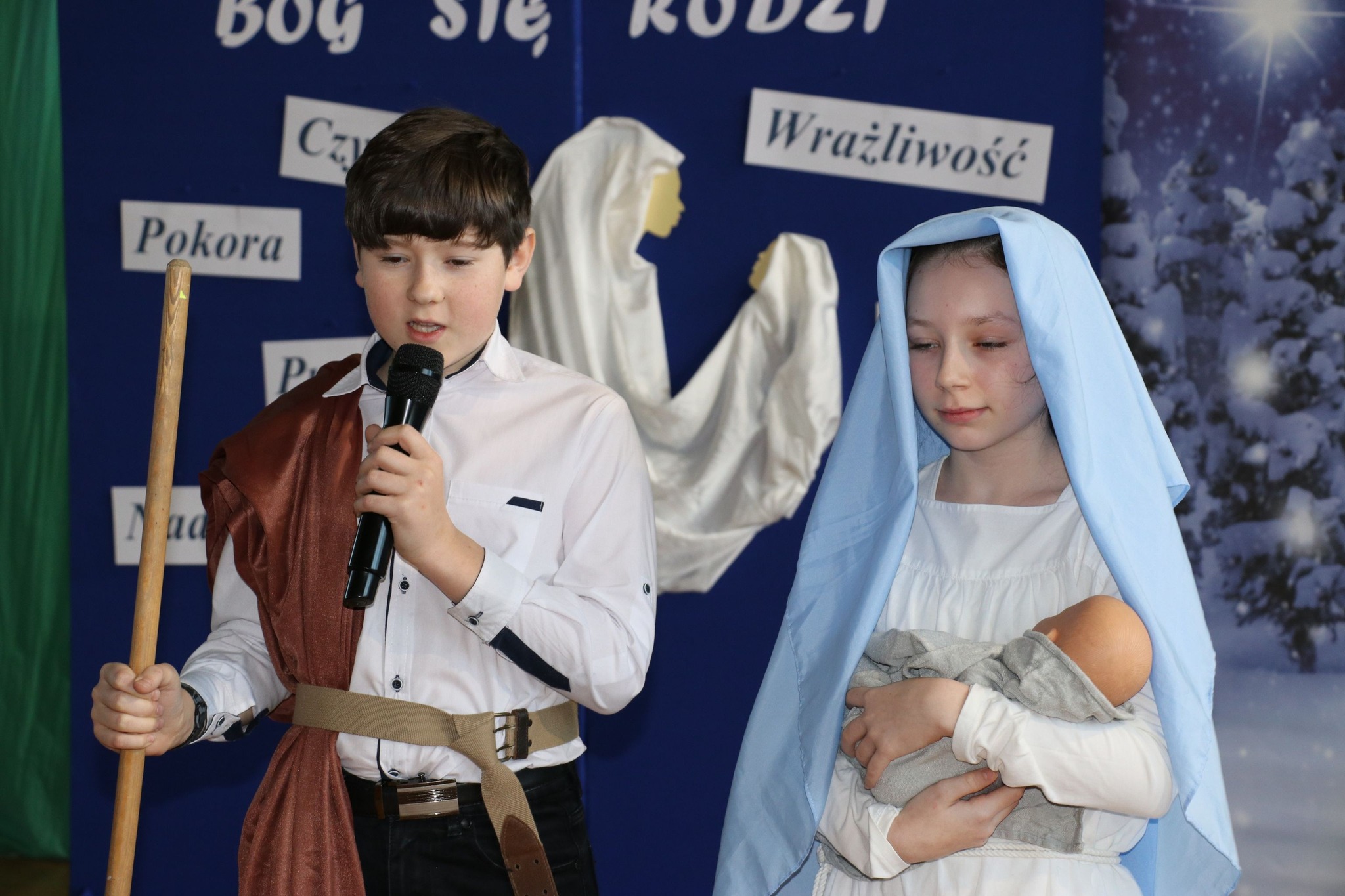 Święta Bożego Narodzenia, to czas kiedy wszyscy są blisko siebie, panuje nastrój przepełniony rodzinnym ciepłem i radością. Uczniowie naszej szkoły, jak co roku uczcili to święto. W dniu 22 grudnia odbyła się Wigilia Szkolna, która została poprzedzona występem artystycznym uczniów klasy szóstej przygotowanym przez pana Pawła Czacha oraz księży: ks. Rafała Głowackiego i ks. proboszcza Andrzeja Srokę pod hasłem „Powitajmy Maleńkiego”. Uczniowie klasy szóstej i wspierający ich koledzy z innych klas, jak prawdziwi artyści, pięknie przebrani, wcielili się w rolę różnych postaci: Józefa, Maryi, pastuszków, aniołów i przedstawili piękną inscenizację narodzin oraz powitania Jezusa. Całą uroczystość uświetniał śpiew pięknych i starych kolęd: „Jaka światłość nad Betlejem się rozchodzi”, „Jezus malusieńki”,  „Cicha noc”, czy też „Gore gwiazda Jezusowi”. Na koniec uczniowie wspólnie zaśpiewali kolędę „Wśród nocnej ciszy”. Po przedstawieniu głos zabrał ks. proboszcz Andrzej Sroka, który poświęcił opłatki i przygotował uczniów do wigilii klasowych, a także złożył wszystkim obecnym świąteczne życzenia. Na koniec zabrał głos dyrektor szkoły- Grzegorz Nowak, który również złożył wszystkim świąteczne życzenia, rozdał nagrody za konkurs matematyczny : „Zróbmy sobie bryłkę” oraz wręczył stypendystom zaproszenia na uroczyste rozdanie stypendiów Burmistrza Boguchwały. Następnie uczniowie rozeszli się do klas, gdzie odbyły się uroczyste wigilie klasowe, które wprowadziły wszystkich w miły, rodzinny i świąteczny klimat Bożego Narodzenia.